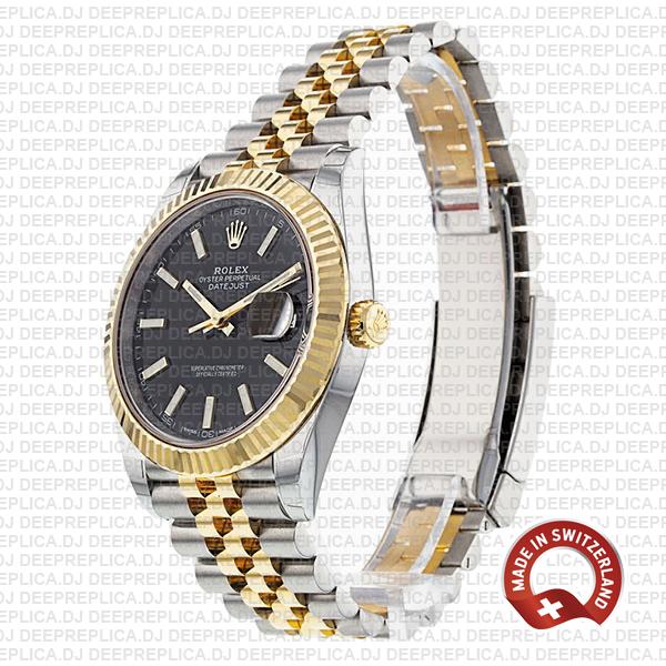 Rolex Datejust 41 Jubilee 2-tone 18k Yellow Gold/904L Steel Fluted Bezel Black Dial Stick Markers 41mm Swiss Replica Watch