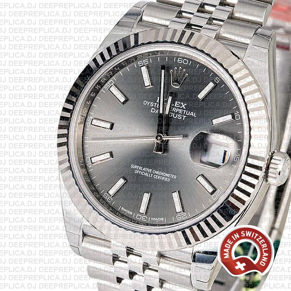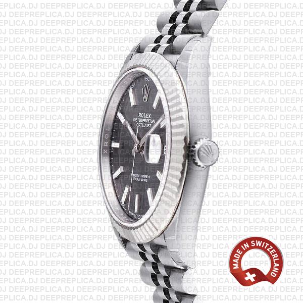 Rolex Datejust 41 Jubilee Dark Rhodium Grey Dial Stick Markers 904L Steel 18k White Gold Fluted Bezel 41mm Swiss Replica Watch