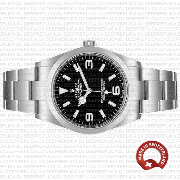 Rolex Explorer I 36mm Black Dial 904L Stainless Steel Swiss Replica Watch Ref: 124270